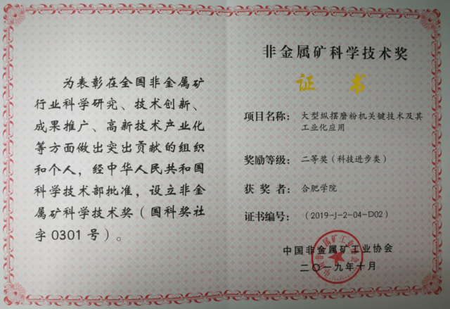 该团队与桂林鸿程矿山设备制造有限责任公司共同完成的《大型纵摆磨粉机关键技术及其工业化应用》项目获得科技进步类二等奖。这是开云首次获得该项奖励。