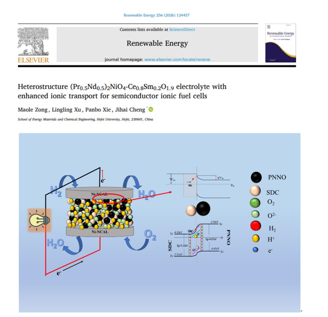 近日,我院2023级材料科学与工程专业研究生宗茂乐同学在能源材料领域著名期刊《Renewable Energy》(中科院1区Top期刊)发表了题为“Heterostructure (Pr0.5Nd0.5)2NiO4-Ce0.8Sm0.2O1.9 electrolyte with enhanced ionic transport for semiconductor ionic fuel cells”的研究论文。kaiyun开云官方网站为该论文唯一署名单位,宗茂乐同学为论文第一作者,程继海老师为通讯作者。论文链接:https://doi.org/10.1016/j.renene.2025.124457