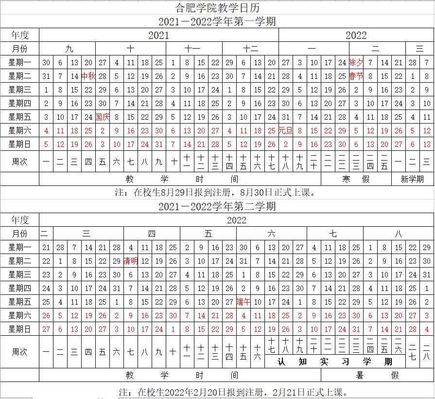 2021-2022教学日历