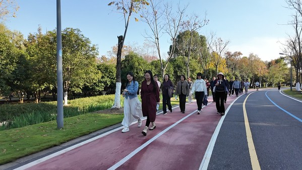秋日的南艳湖草木苍翠、风光宜人,老师们三五成群,沿着湖畔步道徐徐前行。途中,大家畅谈教学心得、交流科研思路,时而驻足欣赏湖光秋色,时而分享生活趣事,欢声笑语萦绕湖畔。轻松的步伐不仅舒展了身心,更拉近了彼此的距离,展现出经济学院教师积极向上的精神风貌。