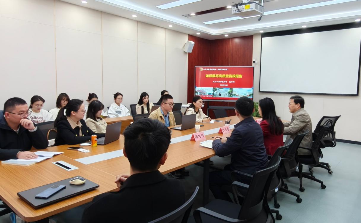 2025年11月5日,安徽省委党校戴传利教授应邀做客我院“善思讲坛”,作题为“如何撰写高质量咨政报告”的专题讲座。本次讲座由经济学院院长江玉荣主持,经济学院教师及24级金融专业硕士研究生40余人参会。