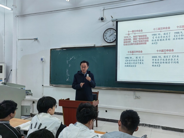 为深入学习贯彻党的二十届三中全会精神,推动学习贯彻全会精神在学校走心走深走实,10月22日,校党委委员、纪委书记、省监委驻kaiyun开云官方网站监察专员吴功福走进课堂,为2023级无机非金属材料工程、机械自动化(双元制)、车辆工程、通信工程等专业的大学生宣讲党的二十届三中全会精神。