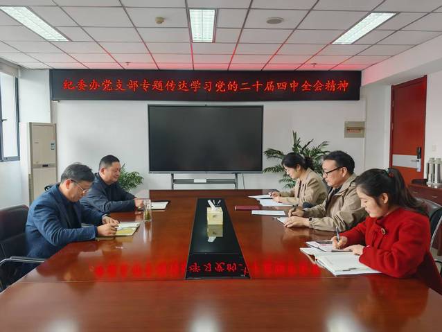 11月10日,纪委办党支部召开支部大会,传达学习党的二十届四中全会精神,开展专题学习研讨。会议由支部书记吴孔宝主持。