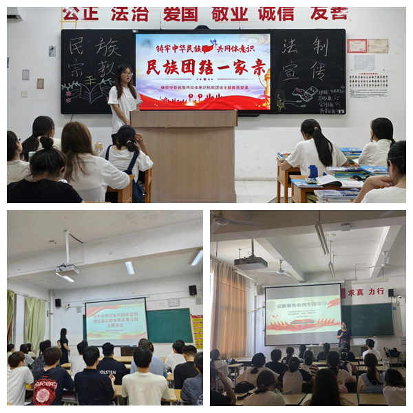 为深入贯彻落实党的二十大精神,进一步增强广大学生对中华民族共同体意识的理解,同时加强对民族宗教政策法规的宣传教育,我院各班于2024年5月开展了“铸牢中华民族共同体意识”宣传主题班会。