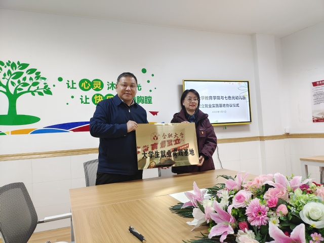 为助力2025届毕业生实现更高质量充分就业,学院充分利用寒假窗口期,根据学校部署要求,积极开展寒假促就业暖心行动,实施“暖心行动”有温度,“访企拓岗”有力度,做实做细就业服务,挖掘开拓岗位信息,多措并举解决毕业生就业问题,提供暖心贴心就业服务。 1月14日,学院党委副书记王迅、党政办主任杜启明、学工办主任符琳一行赴蚌埠高新教育集团七色光幼儿园,签订大学生就业实践基地协议。