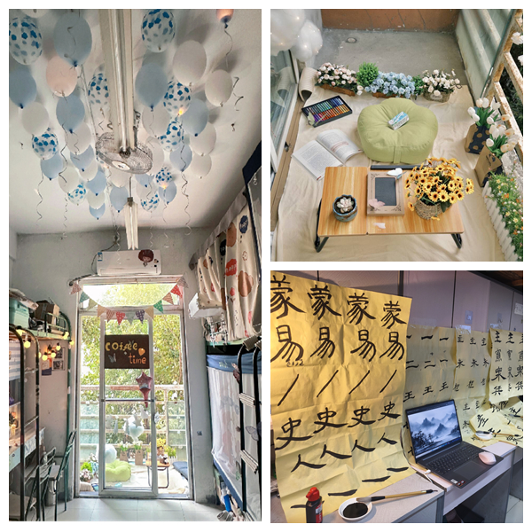初赛阶段,各寝室成员根据自己所抽选的主题充分发挥创意,将专业特色、兴趣爱好与生活美学融入设计中。有的寝室以“国风雅韵”为灵感,用书法字画传统摆件装点空间,彰显中华传统文化魅力;有的寝室打造“声浪”寝室,将音乐元素与个人喜好相结合,展示了独具“声韵”的宿舍文化;还有的宿舍贴上泛黄的老海报、挂着复古编织挂毯,为寝室晕染出八十年代的温柔,仿佛宿舍里的每一个人都跌进了旧电影的每一帧。评委们通过线上评审,从主题创意、空间布局以及文化内涵等维度打分,筛选出设计新颖、风格独特的寝室进入赛。