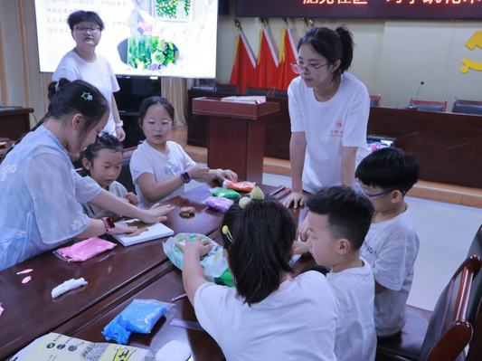 7月1日,在教育学院暑期“三下乡”社会实践活动中,“巧手筑花木,童心绘绿意”花木粘土手工特色课走进肥光社区。实践团队成员鲁丹妮和王欣悦以别开生面的设计开展了互动教学,课程以粘土艺术为载体,引导孩子们在创作实践中深入认知“花木之城”的地域文化特色,切实体会到家乡花木文化的独特魅力。 “大家知道我们肥西县还有一个名字叫‘花木之城’吗?”团队成员鲁丹妮以启发式提问展开课程教学。随后,通过图文并茂的教学资料,系统阐述了肥西县作为“花木之城”的独特优势在于其悠久的苗木种植传统和得天独厚的自然条件。这里不仅孕育了紫薇、桂花等特色品种,更在完善的产业政策支持下,形成了独具特色的花木产业体系。孩子们听的津津有味,对家乡这一特色产业有了全新认识。