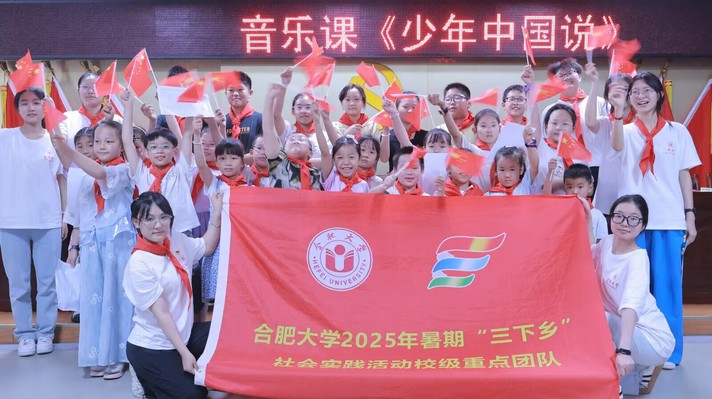 百年恰是风华正茂,四载更显初心如磐。在中国共产党成立104周年之际,7月1日上午,教育学院“薪火传乡韵,师苑‘育’童心”三下乡志愿服务队走进合肥市上派镇肥光社区,以音乐为独特载体,精心准备了一场别开生面的音乐课。团队成员周友梦蝶通过教唱《少年中国说》,引导社区青少年在悠扬歌声中接受爱国教育,厚植家国情怀。