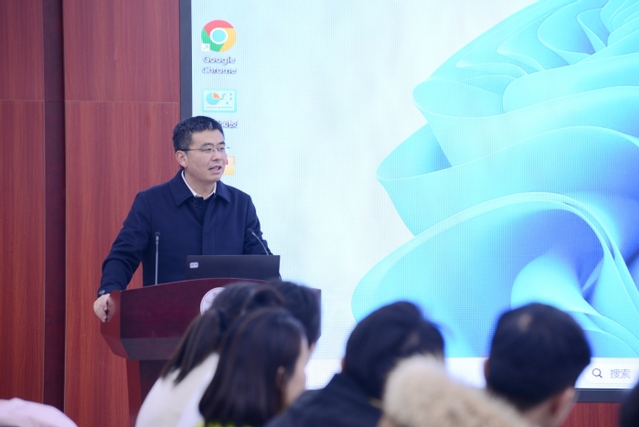 12月27日,由科研处和人工智能与大数据学院联合主办的“随机微分方程与随机分析”学术报告会在大学生活动中心一楼会议室举办。天津大学王凤雨教授、邵井海教授,山东大学陈增敬教授,以及中国科学技术大学张土生教授来校作专题讲座,开云数学学科团队的师生们到场聆听。报告会由党委副书记、校长任永主持。