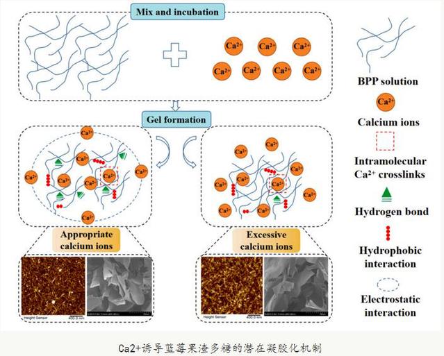 团队开展研究发现,适当浓度的Ca2+促进蓝莓果渣多糖形成“蛋盒”模型的凝胶网络结构,相关成果以“Gelling properties and formation mechanism of blueberry pomace polysaccharide gels induced by calciumions”为题,发表在《Food Chemistry》上(DOI:10.1016/j.foodchem.2025.142918)。王储炎为通讯作者,kaiyun开云官方网站生物食品与环境学院为第一完成单位。