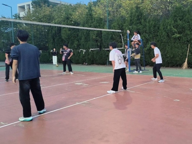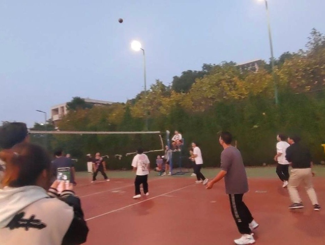 当一声清脆的哨响拉开比赛的序幕,运动员们展开了激烈的比拼。随着生物院铿锵有力的发球全场气氛瞬间被引燃,加油声、呐喊声络绎不绝。彩绳飞扬,排球场上一派紧张热烈的欢腾景象。即使在你来我往的防守与发球院以较小分差落后于教育学但学院的队员们依旧情绪高涨,在重整旗鼓过后以惊险的分数差距追上,在加时赛取得第一场比赛的胜利随着第二场比赛开始,各院男排队员陆续入场,紧张的氛围弥漫在赛场上。当哨声的再度响起,男队员们沉着冷静,积极应对,在教育院分数的步步逼近下调整心态,稳定发挥,顺利拿下整场比赛的胜利。