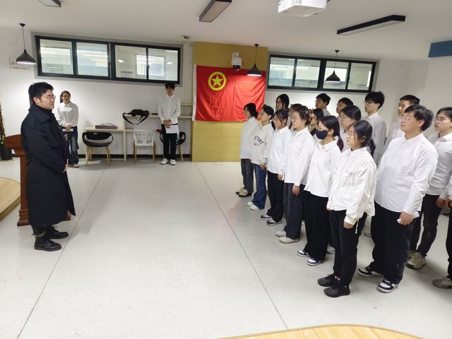 20241226日下午五点五十分,生物食品与环境学院于生化楼智慧教室隆重举行了新团员入团仪式,仪式由组织部郑启桂同学主持,此次活动旨在增强团员意识,激励广大青年学生积极投身于新时代中国特色社会主义建设。