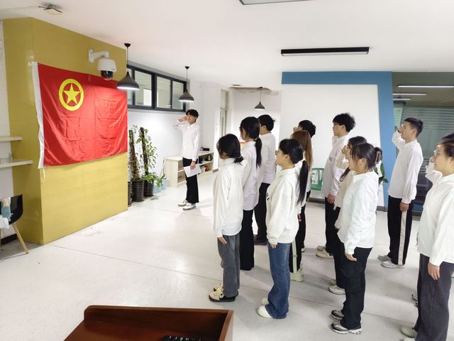 仪式在庄严的国歌声中拉开帷幕,全体师生凝神肃立,高唱国歌。主持人郑启桂宣读新团员名单,本次共有17名同学光荣加入共青团。随后,由团委负责人杨林为新团员们颁发团徽徽章和团员证,新团员们面向团旗,庄严宣誓,展现出青年一代的蓬勃朝气。