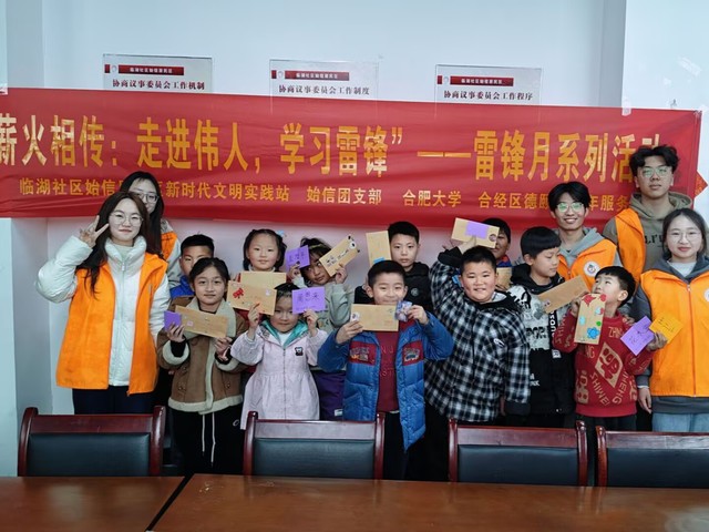 202538,生物食品与环境学院志愿者先锋队与临湖社区举办“薪火相传:走进伟人,学习雷锋”志愿活动。此次活动旨在通过趣味互动和任务闯关的形式,让小朋友们深入了解雷锋同志和孙中山先生的事迹,传承他们的奉献精神和爱国情怀。