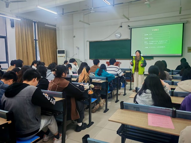 活动伊始,戴燕通过播放企业宣传片,向同学们全方位展示了公司的业务范围、企业文化以及市场影响力。随后,戴燕详细介绍了公司的招聘计划,涵盖多个专业领域,包括食品科学与工程等相关专业,为不同专业背景的同学提供了丰富的就业选择。同时,针对每个岗位的职责、要求以及职业发展路径,都进行了讲解,让同学们清晰地了解到入职后的工作内容和未来的晋升空间。在福利待遇方面,戴燕表示公司提供优厚的薪资待遇、五险一金福利,以及丰富的员工关怀活动。此外,公司还重视人才培养,拥有完善的培训体系,为新入职员工提供系统的岗前培训和在职进修机会,助力员工不断提升专业技能和综合素质。互动问答环节将宣讲会推向高潮,同学们就自己关心的问题,如未来发展,工作时间等,积极提问。戴燕一一作答,与同学们展开了热烈的交流互动,现场气氛十分活跃。