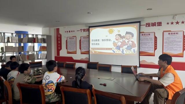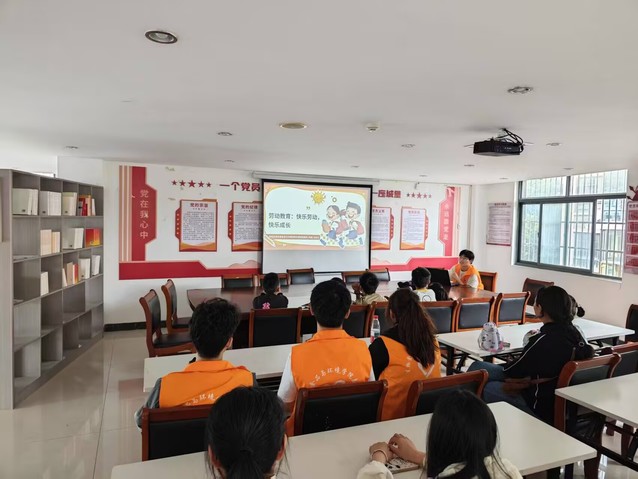 活动现场,大学生志愿者化身“小老师”,用生动活泼的语言和精美的PPT,向孩子们讲解了劳动的意义和价值。从古代的农耕文明到现代的科技进步,从日常生活中的家务劳动到伟大的劳动者故事,孩子们听得津津有味,不时举手提问,现场气氛十分热烈。在互动环节,志愿者们以“劳动知识大挑战”为主题开展趣味问答,为了激发孩子们的参与热情,志愿者提前准备了色彩缤纷的糖果作为奖励。随着贴近生活与学习的问题接连抛出,孩子们纷纷踊跃举手,眼神中满是期待。有的孩子清晰准确地说出劳动法的名称,劳动的发展趋势;有的则列举出洗碗筷、叠衣服、拖地等多项家务劳动。