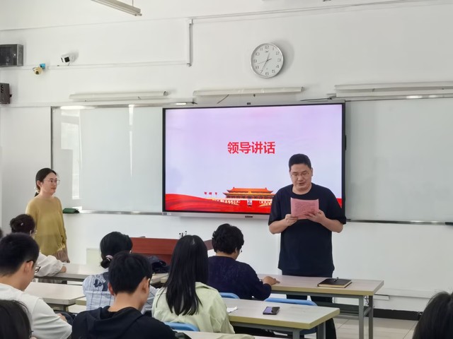 典礼伊始,全体人员肃然起立,奏唱中华人民共和国国歌。激昂的旋律回荡在教室中,激励着每一位学员肩负起时代赋予的责任与使命,为国家的繁荣富强不懈奋斗,也为接下来的学习之旅奠定了坚实的思想基础。随后,阮班锋上台发表讲话。他强调了入党分子培训班的重要意义,指出此次培训不仅是学员们提升政治理论素养的契机,更是他们向党组织靠拢、接受党性教育的关键一步。他希望学员们能够珍惜此次学习机会,以饱满的热情和严谨的态度投入到培训中,努力提升自身素质,争取早日成为一名光荣的中国共产党党员。学员代表随后上台发言,表达了全体学员对此次培训的期待与决心。学员代表表示,大家将严格遵守培训纪律,认真学习党的理论知识,积极参与实践活动,不断提升自己的党性修养和政治觉悟,以实际行动践行入党初心。赵暮雨在典礼上介绍了本次培训的学习内容安排。她指出,培训内容将分为理论学习、实践锻炼和自主学习三部分。理论学习将系统讲解党的基本理论、基本路线和基本方略;实践锻炼将通过实地参观、志愿服务等形式,让学员们在实践中感悟党的宗旨;自主学习则鼓励学员们利用课余时间深入研读党的经典著作,拓宽知识面,提升综合素养。