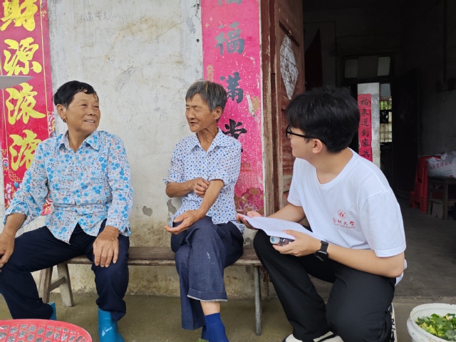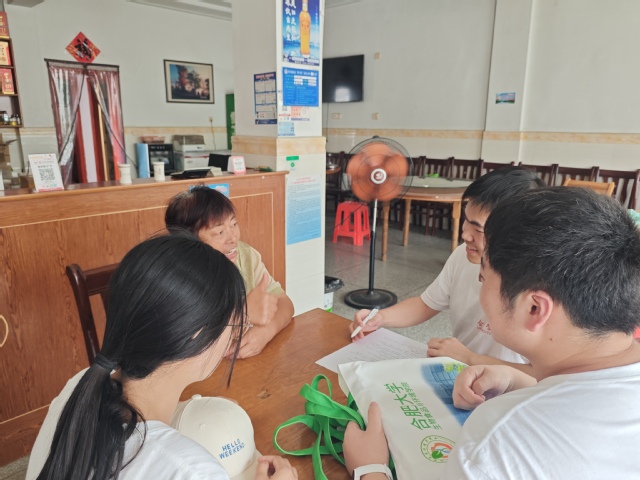 图为调研团成员向当地乡亲问询问卷