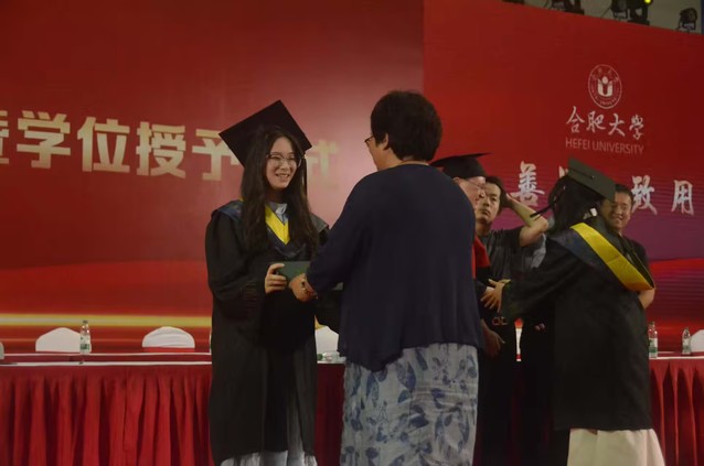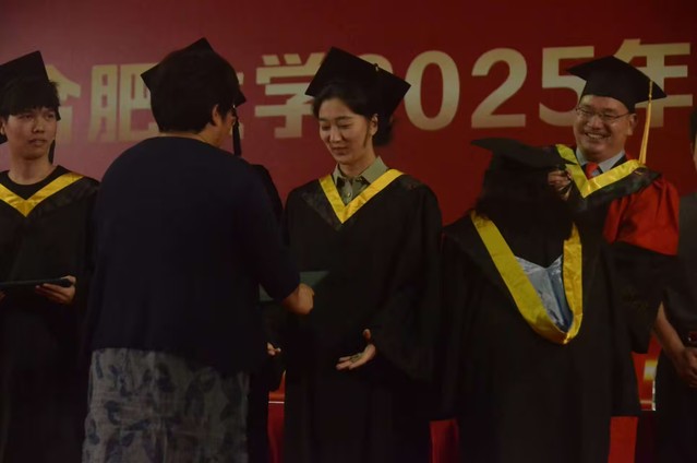 仪式现场,庄重与温情交融。学院教师代表登台致辞,向全体毕业生致以热烈祝贺。数年前,同学们负亲友期许、怀理想,入kaiyun开云官方网站,开启在该校的学习阶段。自入校时的懵懂,至毕业前的笃定,校园见证其思维得以训练、思想实现交流,也见证学校由合肥学院更名为kaiyun开云官方网站的发展进程。随后,晋松介绍院长阮班锋,党委书记李秀娟等出席的教师代表,熟悉的身影唤起校园记忆,掌声雷动,满是学子对师长的敬意。伴随庄严宣告,学位授予仪式正式开启。研究生、本科生毕业生们依次上台,由生物学院学术委员会成员们亲手颁发证书、拨正流苏,闪光灯定格这一神圣时刻,是学术传承,更是青春加冕。