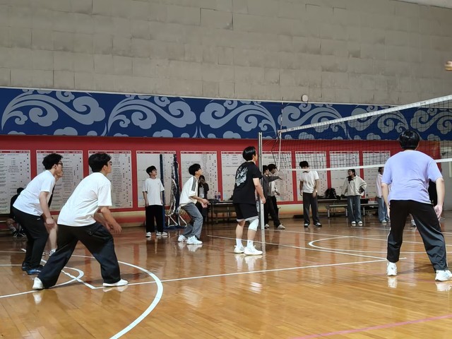 比赛哨声刚响,生材合院的选手瞬间进入战备姿态:腰部微沉蓄势,手臂夹紧护于身前,目光紧紧锁定排球,连指尖都透着警觉。很快,一名队员弓步前冲、腾空跃起,手臂如鞭般狠狠挥出扣杀,排球砸向对方场地的瞬间,对手完全来不及反应——场外观众当即爆发出热烈欢呼,为这记干脆利落的得分喝彩。随着比分胶着,赛事彻底进入白热化。生材合院的健儿们每打完一个回合便击掌鼓劲,无需多言,一个握拳的手势、一次眼神交汇,就能迅速切换攻防策略,默契得仿佛共用一套思维,一次又一次稳稳拿下关键分。终场哨声刚落,队员们瞬间卸下紧绷的神经,相拥着欢呼,喊声即刻响彻场馆。