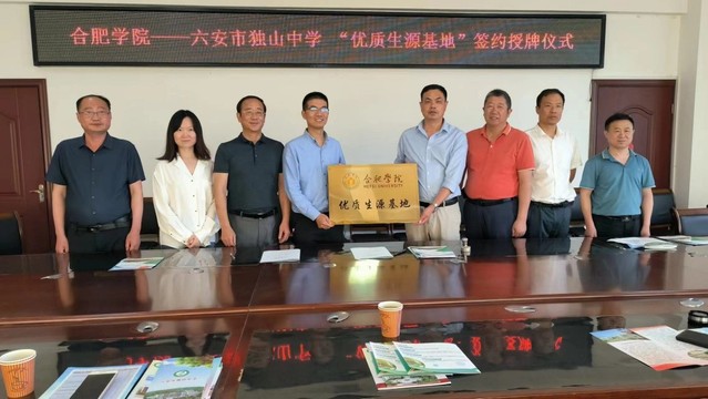 座谈会后,双方进行了合肥学院和独山中学“优质生源基地”签约授牌仪式。黄永富副校长表示将通过“优质生源基地”的平台建设增强两校之间的沟通、交流与合作。