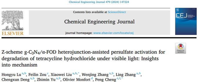 刘晓薇教授团队:Z-scheme g-C3N4/α-FOD heterojunction-assisted persulfate activation for degradation of tetracycline hydrochloride under visible light: Insights into mechanism