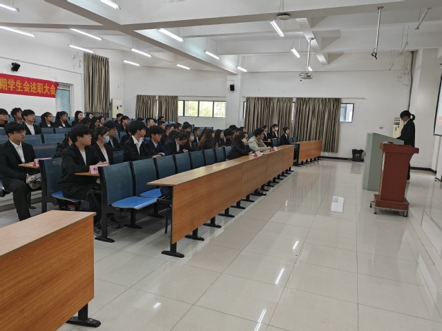 410日中午十二点半,生物食品与环境学院2023--2024学年第二学期学生会述职大会于生化楼一阶梯准时举行。出席本次会议的有党委副书记晋松、团委负责人杨林、团委学生会主席团成员、各部门部长以及委员。本次会议由主席团乐雯轩主持。