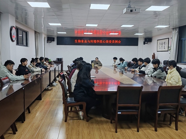 生物食品与环境学院例会的顺利开展,为进一步宣传心理知识、引导健康人生,提高学生的心理素质,营造良好的校园心理文化氛围做出了重要贡献。通过这次会议,学院为学生的心理健康搭建了更加坚实的平台,为构建支持性、包容性的校园环境迈出了坚实的步伐。