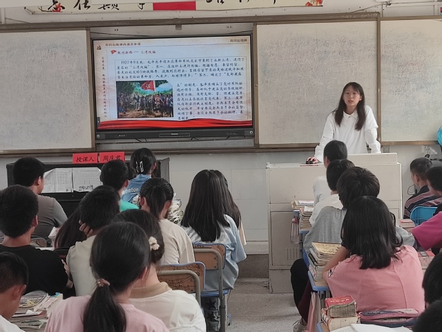 课上,宣讲团成员们从理论上讲解了井冈山精神的内涵、发展,用一则则小故事诠释了井冈山精神的核心,用音频与视频传递了井冈山精神的时代价值。宣讲团带领学生深情朗诵《西江月·井冈山》、《水调歌头·重上井冈山》,方志敏的《可爱的中国》选段,在朗诵中体悟井冈山精神,并鼓励学生们要不怕困难、敢于创新,结合身边的每一件小事,完成每一项任务,做井冈山精神的践行者,为建设国家贡献自身的力量。