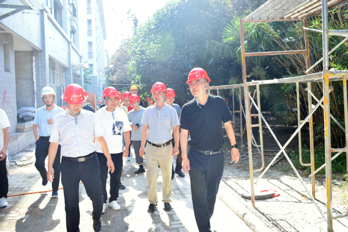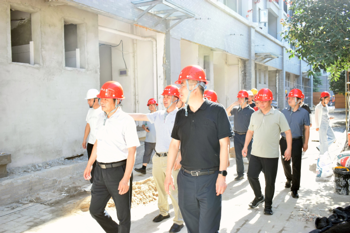 校领导一行先后来到50号楼、34栋化学实验室和28栋学生宿舍施工现场,听取相关负责同志汇报暑期学生宿舍维修改造、校园水电管网改造项目、西南地块学生宿舍建设项目、校园零星维修、网络保障和水电供应等后勤保障工作的进展情况,对不畏高温、坚守岗位的后勤人员致以诚挚慰问和衷心感谢。