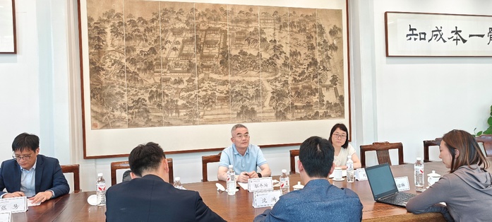 在北京大学新结构经济学研究院,邬平川一行与研究院国内发展合作部主任沈鸿等,就省级高端智库建设、学术科研合作以及学科共建等展开交流,双方表达了积极的合作意向。
