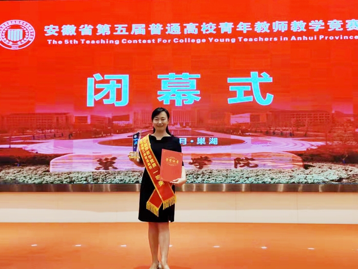 作为一名优秀的青年党员教师,徐天戍有着扎实的专业基础和教学功底,也曾多次获得各类大赛的奖项荣誉,为学院乃至学校争光。2017年获合肥学院第八届青年教师教学竞赛一等奖,2018年获安徽省教坛新秀称号,2021年获合肥学院第十一届青年教师教学创新大赛一等奖……除此之外,徐天戍还主持省厅级教科研项目5项、校级项目5项,参与省级精品课程及示范课建设多项,发表学术论文近20篇等。这一项项荣誉,都是她在专业教学路上不断前进的印记。当被问起“征战”各类赛事的心得,徐天戍坚定地说:“在比赛中我时常告诉自己,我的表现不仅代表的是我个人,更代表着外国语学院的荣誉。同时,在比赛前期,学院很多资深前辈给予我很多的指导和帮助,无论如何,我一定会全力以赴,不负大家对我的期望!”