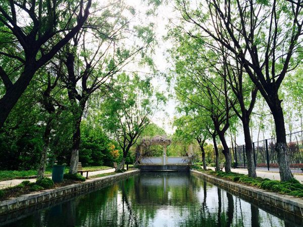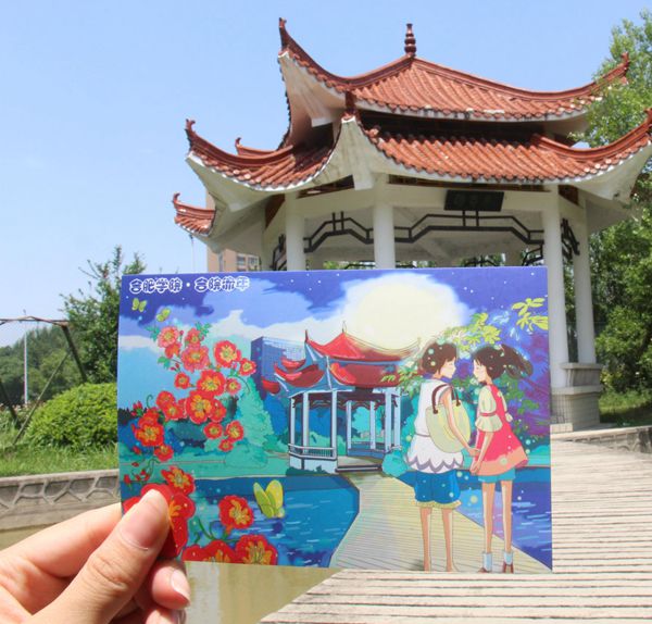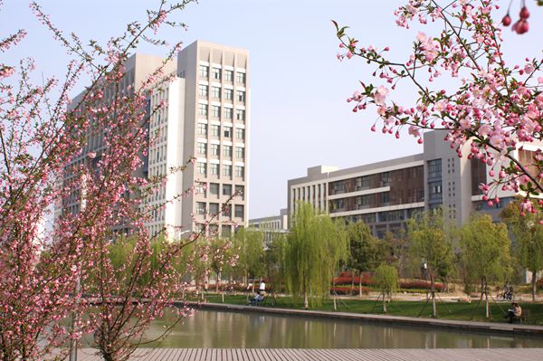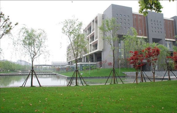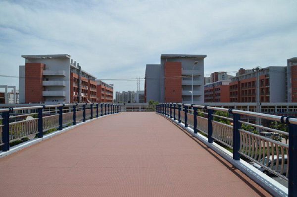 穿过教学区,你将体验到校园中的古色古韵。那玲珑精致的亭台楼阁,清幽秀丽的池馆水廊令人眼前一亮。佳木葱茏,百花争艳,另有长廊伫立水边。枯藤缠绕,为长廊更添一番风采。来到湖畔,顺着木板桥走近长亭休憩,在亭内躯体享受着阴蔽,鼻呼吸着每一丝凉意,耳聆听鸟儿每一声脆啼,眼沉醉于一抹抹浓绿。忽然,一旁的艺术楼缓缓流出琴声,时而欢快悠扬,时而低调深沉……令人如同置身音乐的殿堂。在这幽静的环境里,身心得到极大的放松。