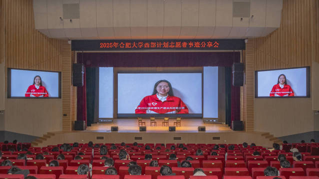 分享会上,来自人工智能与大数据学院毕业生叱干文强、外国语学院毕业生殷牧岚、经济与管理学院毕业生刘晨阳三位优秀志愿者代表讲述了他们在西部基层的志愿故事。殷牧岚扎根安徽长丰县基层,充分发挥自身专业优势,将个人特长融入基层工作,组织村民开展文体活动,凭借专业知识和奉献精神赢得群众赞誉;刘晨阳服务于新疆生产建设兵团,以亲身经历讲述兵团人扎根新疆、建设新疆的种种事迹,用详实的数据和鲜活的案例向学子们展示“热爱祖国、无私奉献”的兵团精神;叱干文强曾在新疆维吾尔自治区洛浦县拜什托格拉克乡志愿服务期间担任乡村教师,他用镜头记录了一个个打动人心的瞬间:清晨教室里飘着的奶茶香气,家访时老乡执意塞进包里的馕饼,还有放学路上孩子们争相牵着老师的手……这些画面让远赴西部支教的教师形象在听众心中渐渐清晰。
