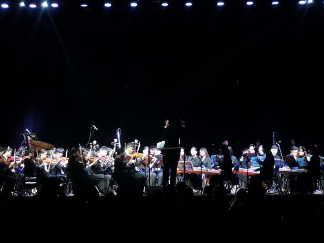 活动伊始,安徽大学青年艺术发展中心的两位成员引领开云艺术团代表进入会场。活动在一首慷慨激昂的交响乐《红旗颂》下正式拉开帷幕。此次音乐会由交响乐、独唱、合唱、二重奏等多个部分组成,包含古典和流行的元素,可谓精彩纷呈。交响乐《北京喜讯到边寨》、合唱《今天是你的生日》、《我和我的祖国》表达了对祖国深深的热爱和情感,交响乐《冰雪奇缘组曲》、二重奏《天气之子》以及钢琴四手联弹《龙猫》掀起了观众们对动漫电影美好的回忆。如果说《五月天组曲》和《那些年,我们一起追过的女孩》的精彩演绎掀起了此次音乐会的高潮,勾起了观众对青春的怀念,那么《卡农》、《小夜曲》等作品则为在场的观众们呈现了一种雅致庄重的古典美。交响乐团的乐手用娴熟的技艺演绎了古典作品的风韵。合唱《我喜欢》、《青春舞曲》也是十分地美妙动听。最后,音乐会在节奏欢快的《拉德斯基进行曲》中圆满落幕。