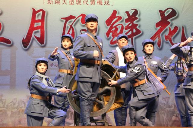 一声锣响,由安徽演艺集团创排出品的新编大型现代黄梅戏《五月的鲜花》拉开了表演的帷幕。运用传统乐器与交响乐相结合的形式,汇聚众多国家级演员,采用精细讲究的舞台布置,才造就了《五月的鲜花》这一精品戏曲。全剧通过“约法三章”、“银圆风波”、“生死欠条”、“黎明托孤”、“江边话别”、“书院涅槃”等真实感人的戏剧场面,以顾重光、童华等一组新四军群像的塑造,让人们感受到那一代人身上的情感硬度和信仰纯度,昭示着中国共产党夺取全国胜利、走向辉煌的历史必然,兑换小分队谱写了一曲共产党人诚信如天的生命壮歌。《五月的鲜花》把握了时代审美特征,体贴人民群众的审美选择,绚丽的舞美、创新的形式紧紧吸引住在场师生们的注意,现场掌声如潮。