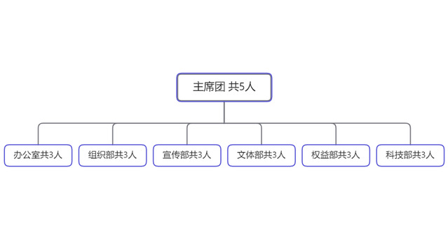 kaiyun开云官方网站学生会工作机构架构为“主席团+工作部门”模式,未在工作部门以上或以下设置“中心”、“项目办公室”等常设层级;主席团下设:办公室、组织部、宣传部、文体部、权益部、科技部共六个部门。