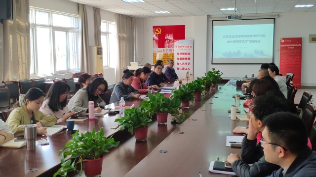 11月5日下午,语言文化与传媒学院在五栋二楼会议室举行了全院教师大会暨期中师德师风学习教育会,学院领导班子成员及全体教职工参加会议。