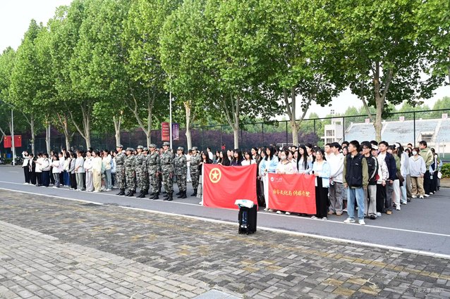 升旗仪式结束后,全体人员齐声高唱《光荣啊,中国共青团》。嘹亮的歌声回荡在现场,展现出青年学子积极向上的精神风貌与对共青团的无限热爱。