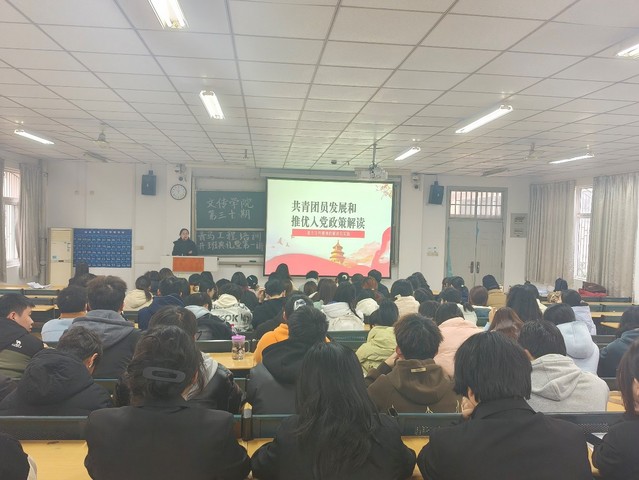 大会共四项议程。首先,主持人介绍青马团课的相关事项和重要意义。全体青马团课学员起立,奏唱团歌。第二项议程,团委窦思佳老师宣读了青马团课培训班管理条例,并提出青马团课是培养青年马克思主义者的重要阵地,希望同学们通过团课的学习,坚定理想信念,增强责任感和使命感,将共青团精神发扬光大。