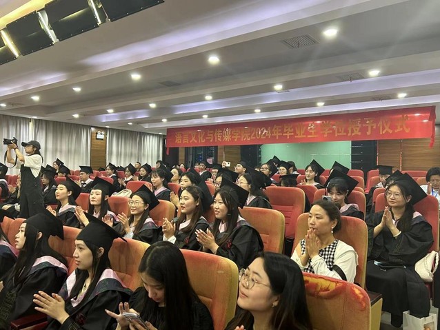 2024年7月3日上午10:30,kaiyun开云官方网站语言文化与传媒学院2024届毕业生学位授予仪式在一区博学楼C座学术报告厅举行,出席仪式的嘉宾为语言文化与传媒学院的学院领导和学院学位评定委员会成员。
