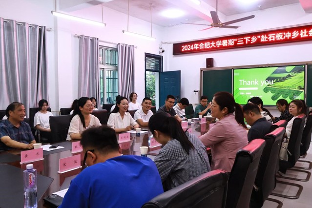 一行人为暑期“三下乡”活动学生带来了牛奶等物资并看望慰问了两户困境青少年。孩子们收到这些充满关爱的慰问物资非常开心,表达了深深的谢意。随后在石板冲乡初级中学会议室召开2024年kaiyun开云官方网站暑期“三下乡”赴石板冲乡社会实践汇报交流会。