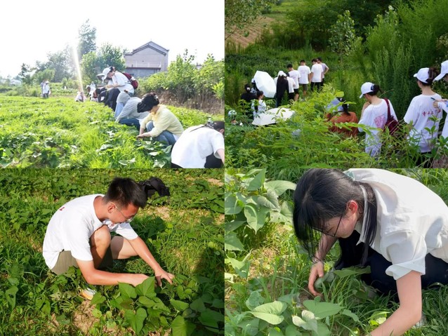 助力乡村振兴,擘画美丽乡村。下午四点,实践团队全体成员从石板冲乡初级中学出发,绕过弯曲的田间小路,来到了附近的红薯地田间帮助农民除杂草。在当地村民的现场指导下,队员们以陇为单位进行分组,先开始分配农具,或用手拔,或用锄铲,迅速投入到紧张的除草工作中去。汗水从额头滑落,浸湿了衣衫,却无法阻挡大家的热情。经过近两个小时的劳作,杂草铺成一片片,红薯苗周围干干净净,回首望去不禁让人心生满足。大家步伐轻快,虽然身体因劳作而略显疲惫,但心中却满载着成就感与温暖。通过本次学农助农劳动,同学们切实感受了到农民的艰辛,了解了农业生产的实际情况,收获了劳动的快乐,真正做到了“下地干真活,助农办实事”,未来将继续以实际行动践行责任与担当,在实践中经风雨、增才干。