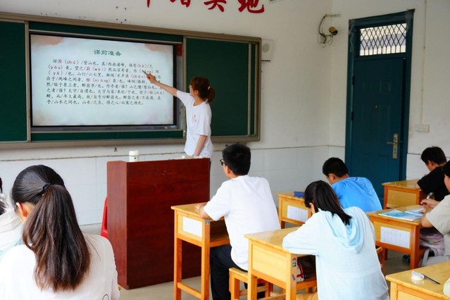 教育是社会进步的基石,是国家和民族繁荣昌盛的源泉。202476日,语言文化与传媒学院“文脉传承,助农兴村”暑期“三下乡”社会实践团队中的教学组细分了国学组、英语组和书法组,旨在激发孩子们对传统文化的的兴趣。虽然室外烈日炎炎,但教室内充满了欢声笑语,一场场生动有趣的教学课堂在石板冲乡初级中学的教室里如火如荼地进行着。