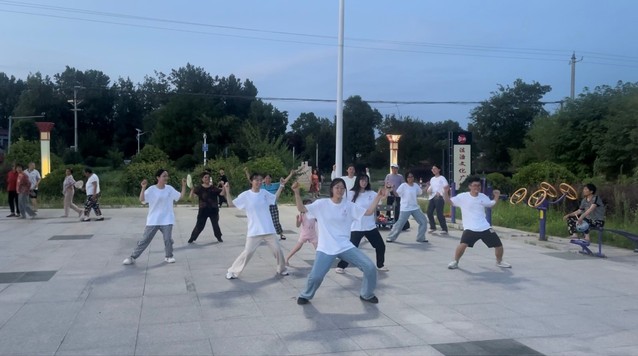 傍晚六点半,文艺组来到法治文化广场进行节目排练,调试音响设备并进行试音准备,在一首首的歌曲中,饭后散步的乡民们逐渐被音乐调动起的活跃气氛所感染,加入到舞蹈之中。