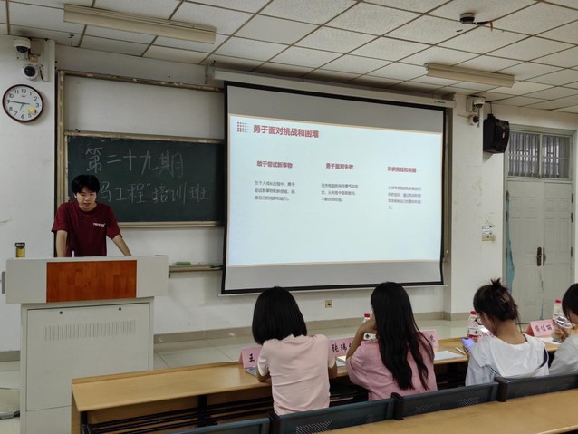 64日晚上630,第二十九期青马工程培训班总结大会于一区善思楼C101教室圆满结束,各组青马学员代表通过精彩的演讲汇报展示了他们在培训期间的学习成果与心得。