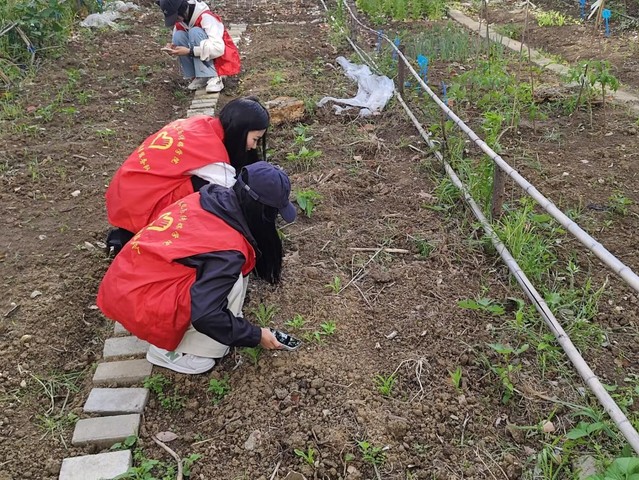59日下午400,语言文化与传媒学院志愿者协会组织开展合耕园劳动实践活动,活动内容为拔除菜地里的杂草。