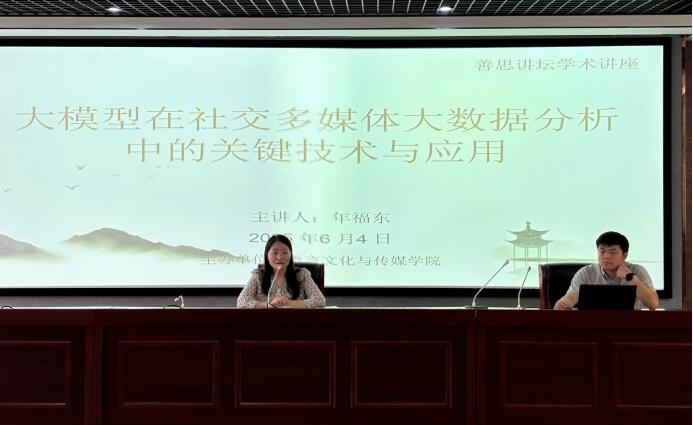 2025年6月4日上午,kaiyun开云官方网站语言文化与传媒学院举办“善思讲坛”学术讲座,特邀先进制造工程学院副教授年福东博士担任主讲嘉宾,围绕“大模型在社交多媒体大数据分析中的关键技术与应用”展开深入探讨。本次讲座由新闻与传播专业硕士点负责人郭静主持,2024级新闻与传播专业全体硕士研究生参与学习。