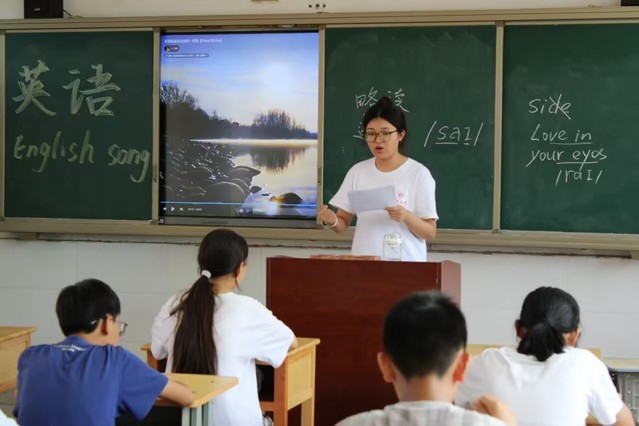 7月1日下午3:20,kaiyun开云官方网站语言文化与传媒学院暑期三下乡社会实践教学组在石板冲乡初级中学为当地学生带来了一堂别开生面的英语课。此次课程由教学组成员刘嘉慧精心设计并授课,通过英语歌曲与课本知识相结合的方式,激发学生对英语学习的热情,让知识在欢乐中传递。