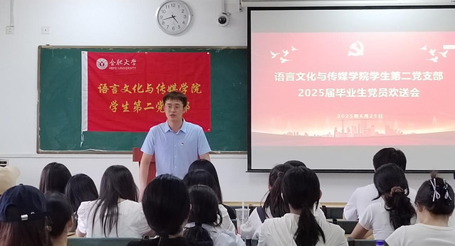 为庆祝中国共产党成立104周年,推动深入贯彻中央八项规定精神学习教育走深走实,近期,语言文化与传媒学院学生第二党支部在5栋309教室召开2025届毕业生党员欢送会。